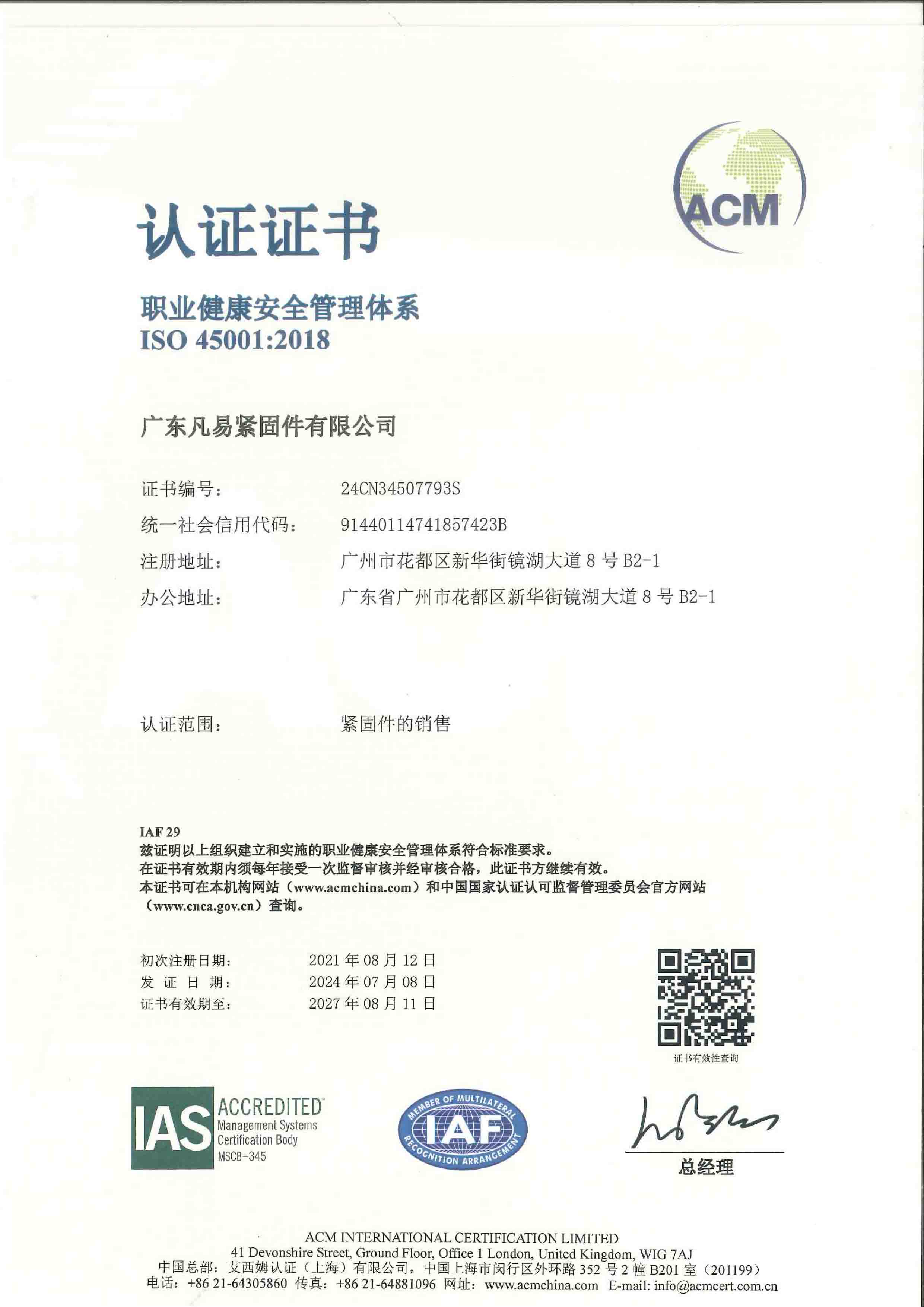 ISO45001Ö°Òµ½¡¿µ°²È«¹ÜÀíÌåϵ֤Êé